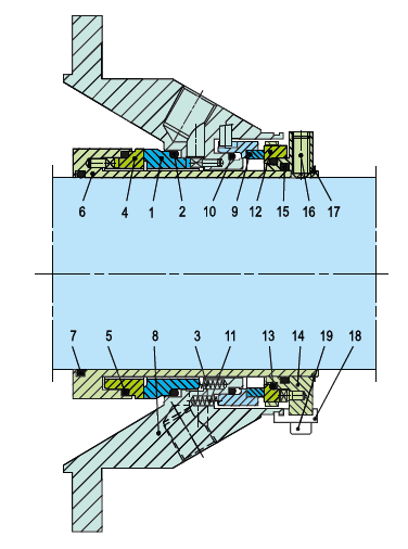 Seal Face: Silicon Carbide (Q1), Carbon graphite resin impregnated (B), Tungsten Carbide (U2)